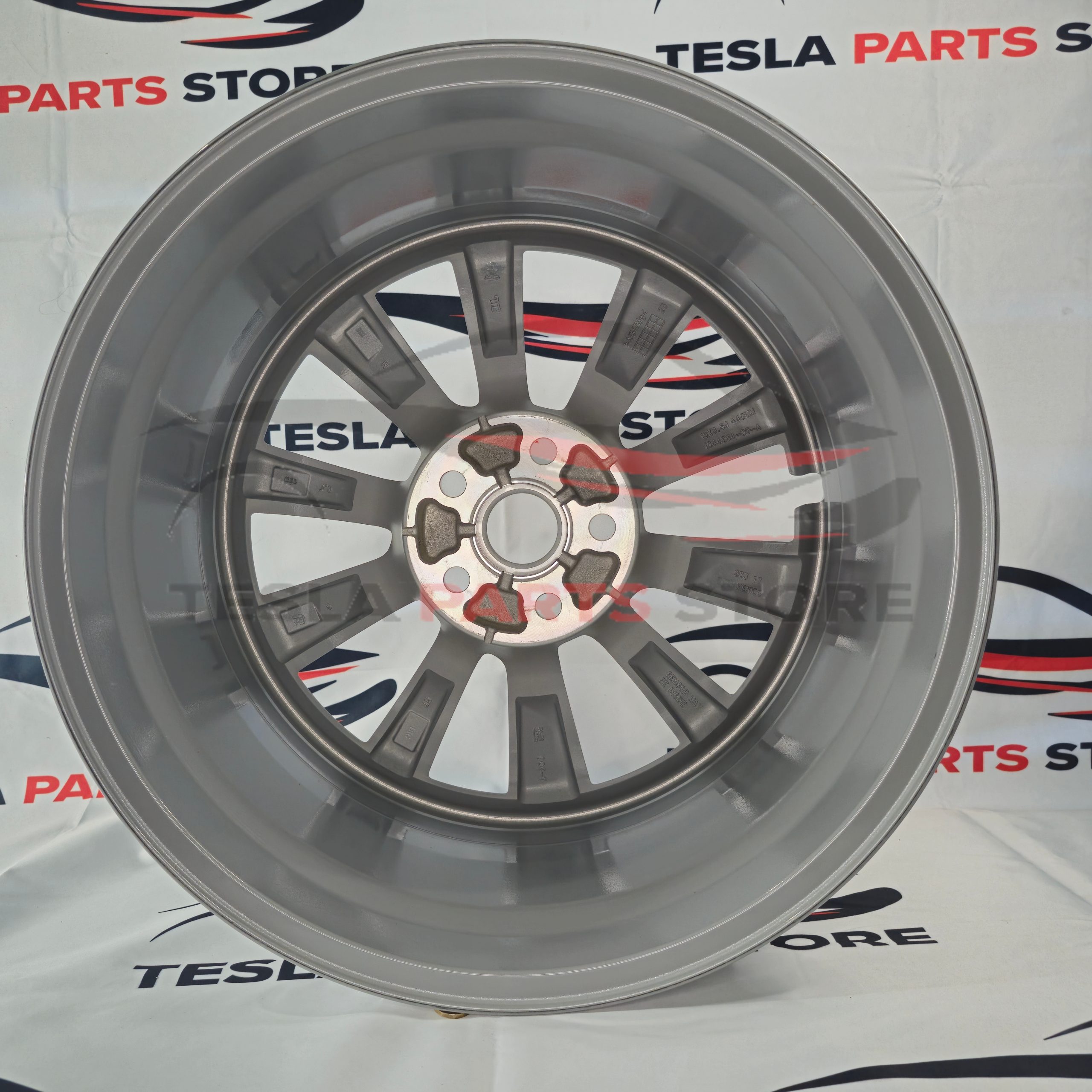 This is OEM however the logos MAY be scraped off, so you can get the quality of a tesla wheel without such a steep price. And the logo is on the inside of the wheel spoke or wheel drum. So it wont effect your tesla visually.